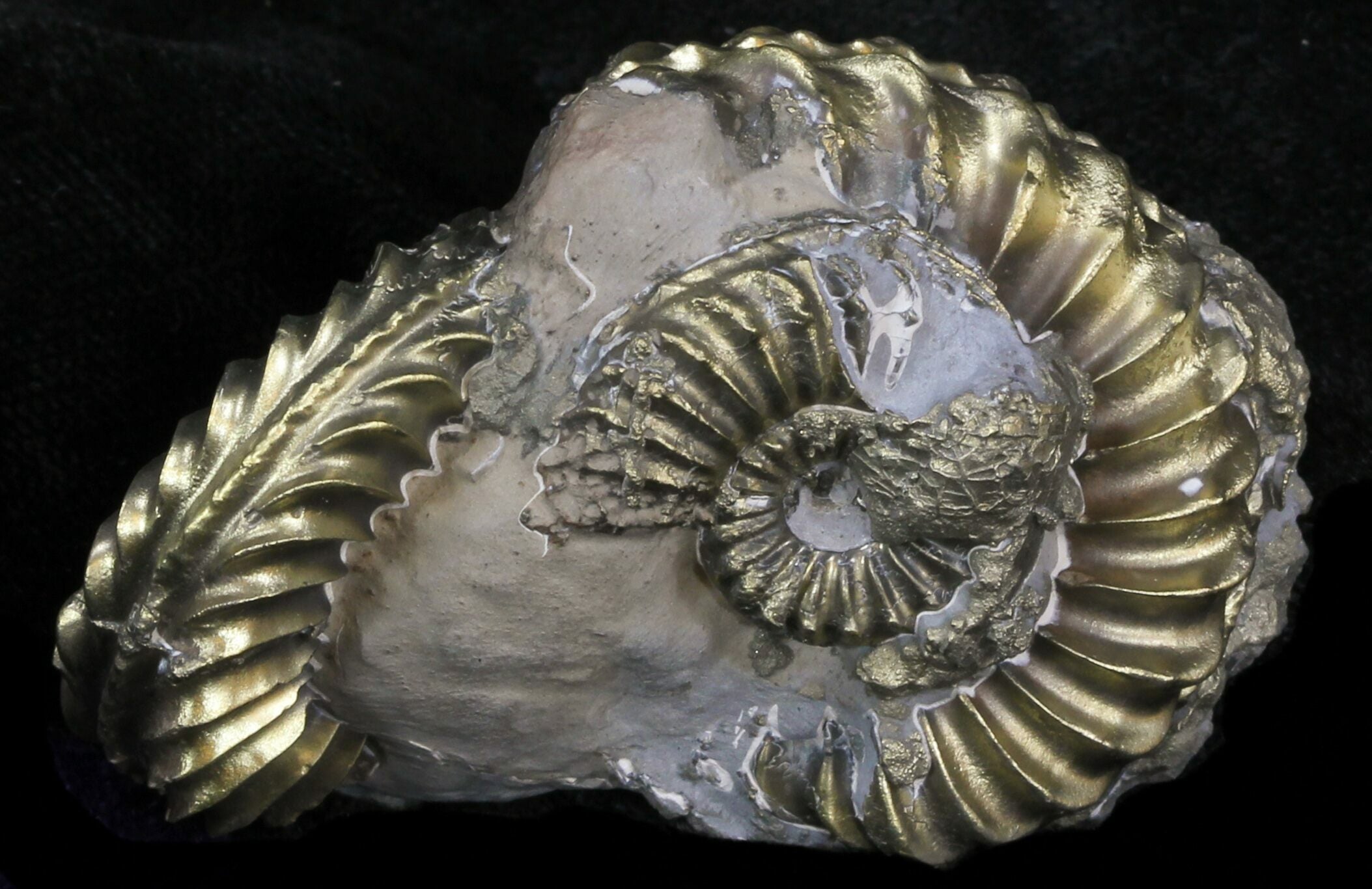 Pyrite (or iron sulfide: FeS2) is a common mineral that is often found in sedimentary rock. In some fossil deposits pyrite gets incorporated into bone, invertebrate shell, and plant fossils during the process of fossilization. The most common pyrite fossils are ammonites. If these fossils are exposed to conditions of high humidity, pyrite disease also known as pyrite rot can occur.