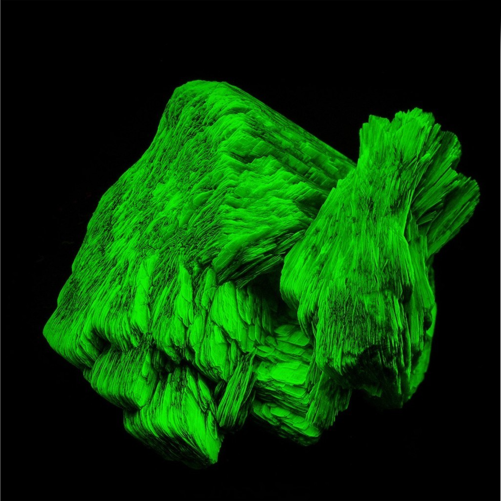 Uranocircite is a hydrated phosphate of uranium and barium. It is one of several minerals that exhibit a strong green-yellow fluorescence when viewed under UV light.